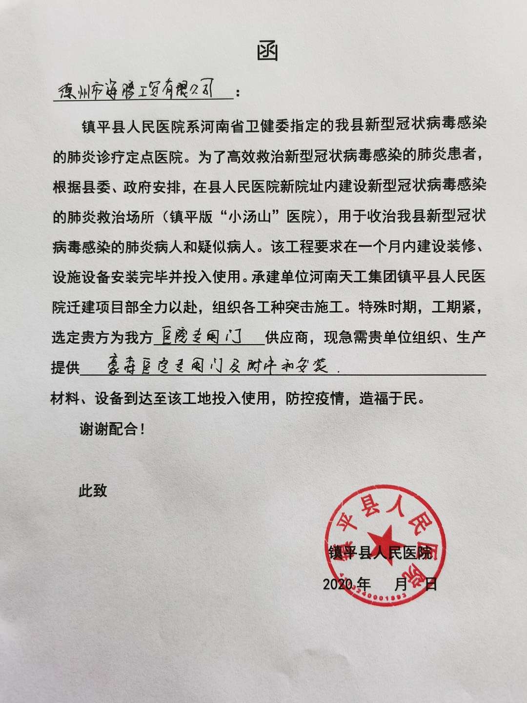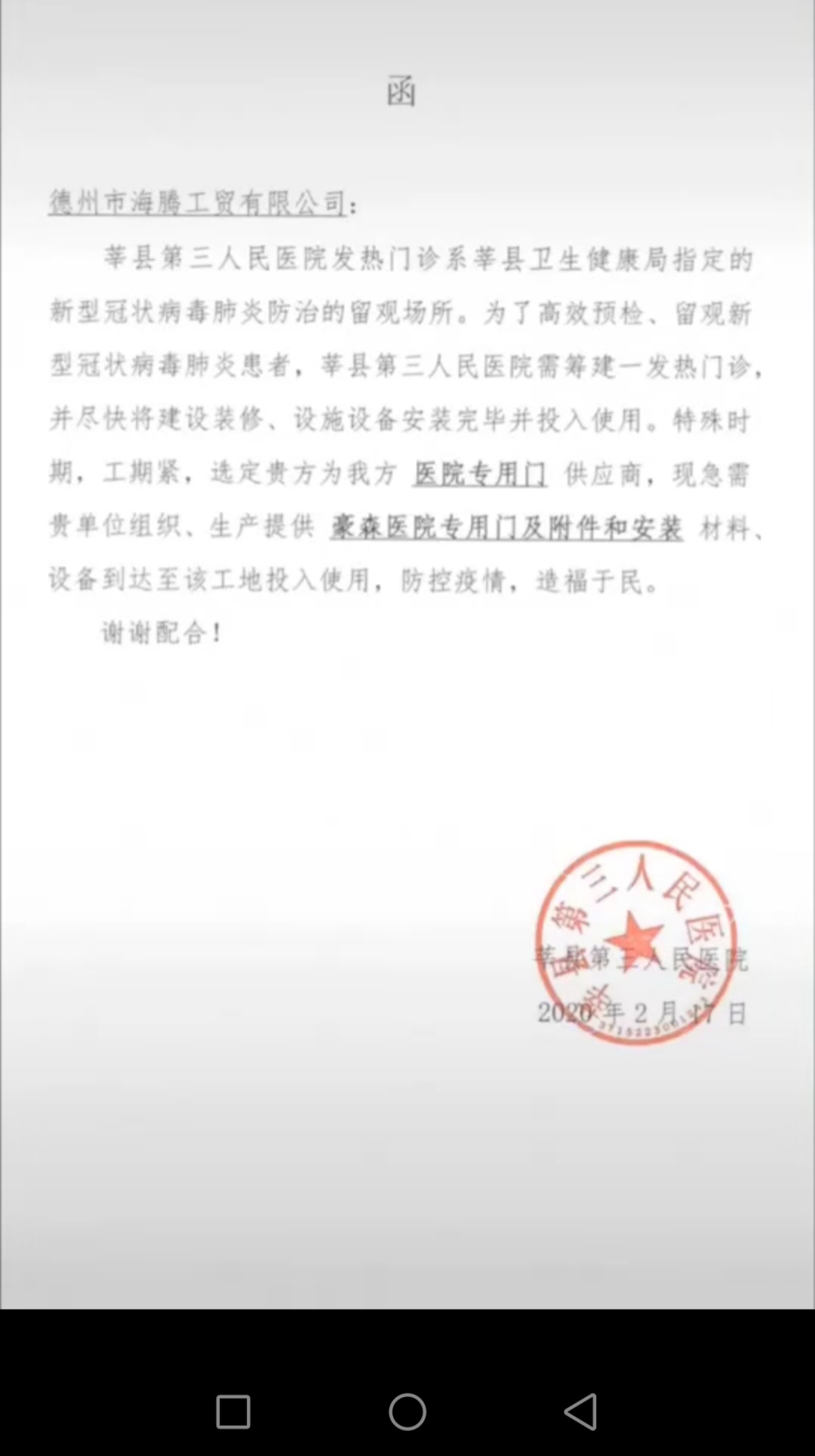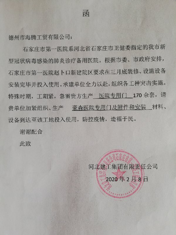 抗擊新冠病毒,豪森人在行動(dòng),為醫(yī)院建設(shè)貢獻(xiàn)綿薄之力