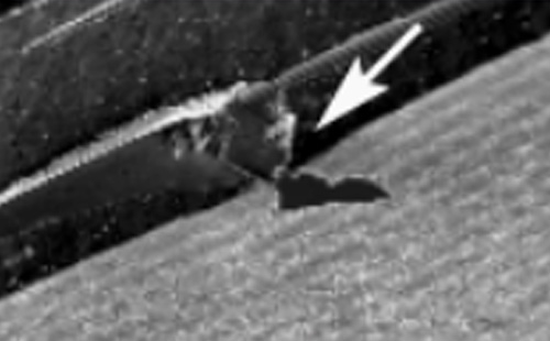 正面崩邊分為三種類型:1.初期崩邊跟新刀片裝機有關,可能是刀片安裝傾斜、刀片未修成真圓或者金剛石未產生容削槽等原因造成的;2.循環(huán)崩邊可能是由于刀片表面收到沖擊、刀片表面有大顆粒金剛石凸起或者其它外來雜質;3.其它崩邊造成的原因有刀片偏擺、給進速度和切割深度的問題,還有可能是因為工件有位移形變造成的異常崩邊。
